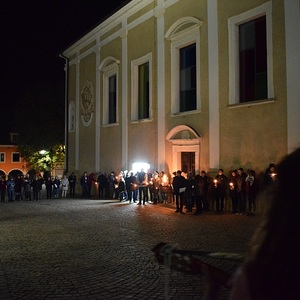 Am Friedhof angekommen gab es noch eine Station beim Kreuz. Die Kulisse war wie immer außergewöhnlich - der Friedhof mit Kerzen überseht und wir zwischendrin.