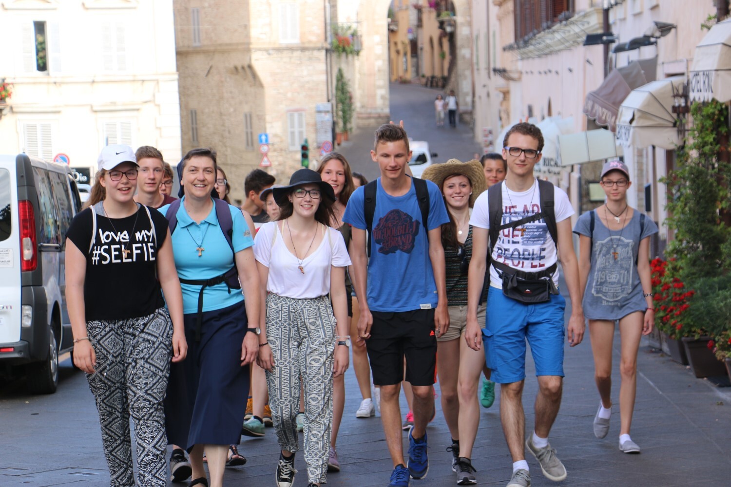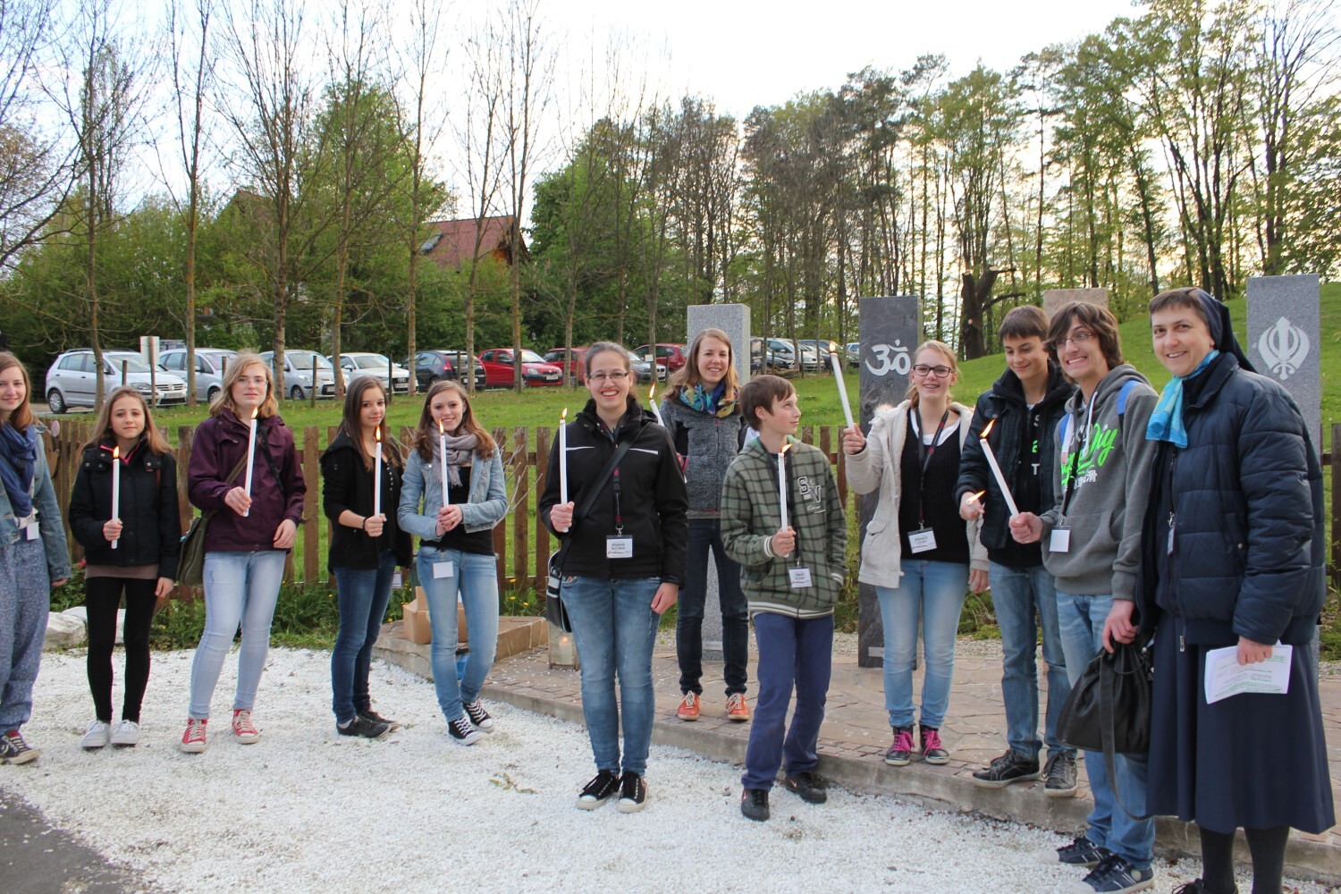 Sr. Maria geht mit den Firmlingen den Markusweg