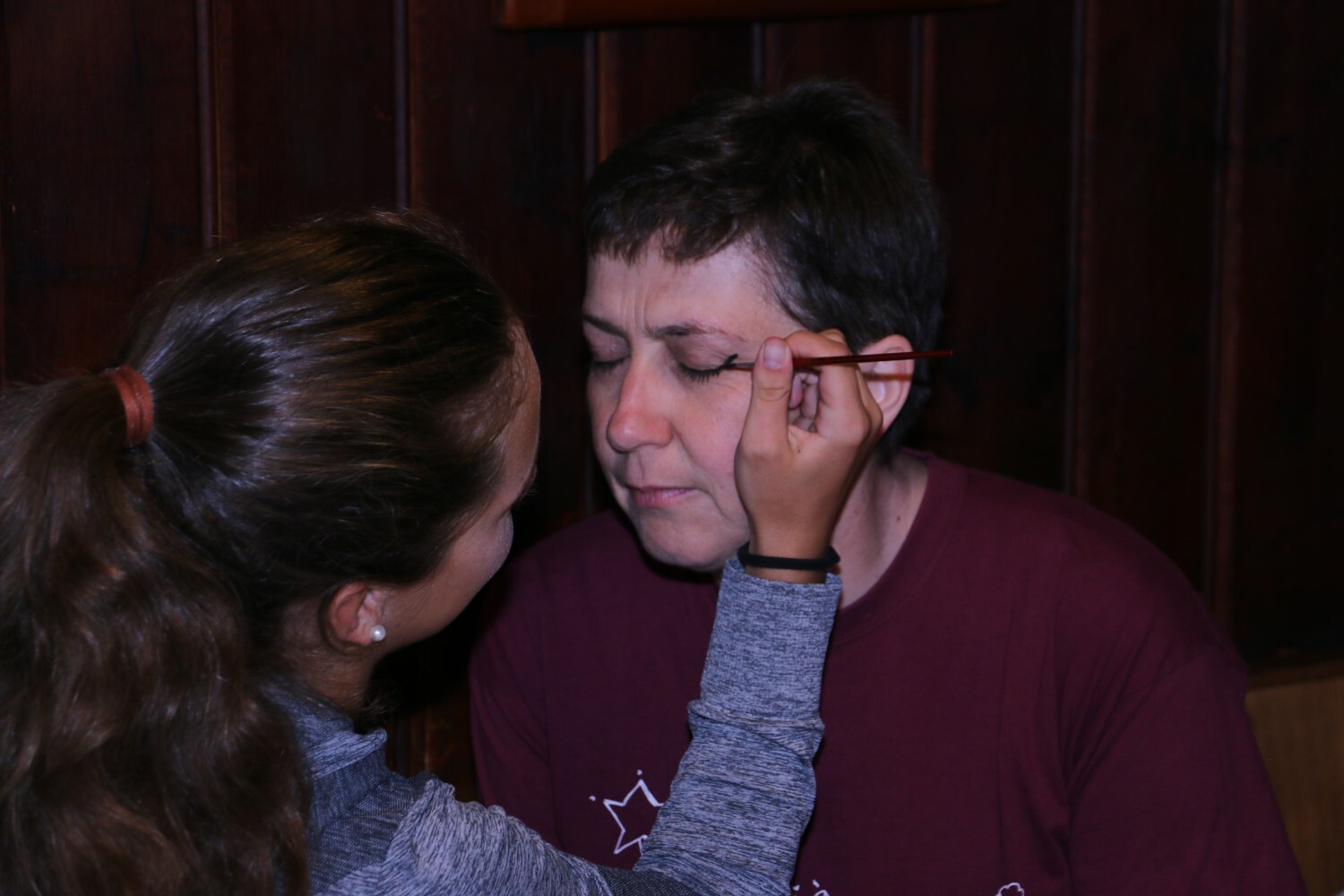 Bei der Zeitreise in die Antike erhält auch Sr. Maria einen ägyptischen Lidstrich.