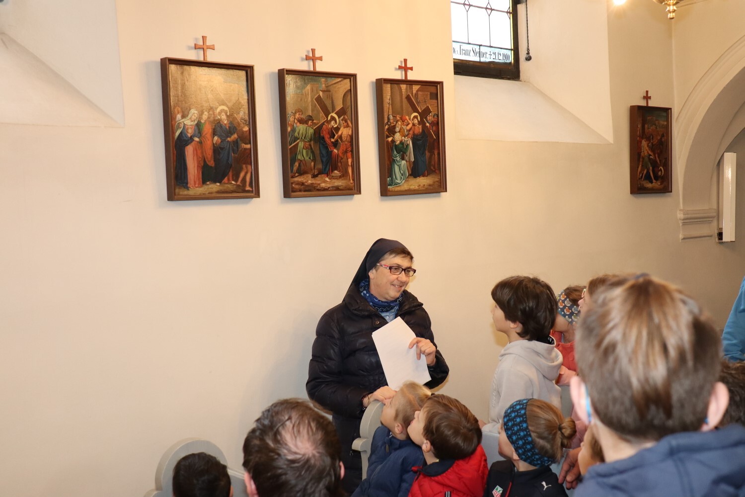 Sr. Maria erklärt die Kreuzwegstationen.