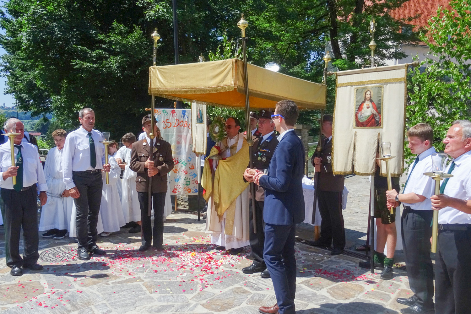 Heilige Messe mit anschließender Fronleichnamsprozession mit Pfarrer Johann Karner in Dobl.
