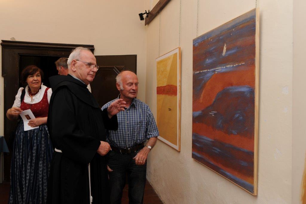 Die Eröffnung der Ausstellung "... LICHTWÄRTS", Bilder auf Holz, Leinen und Glas des Religionspädagogen und Künstlers Kurt Zisler, erfolgte am 10. August 2017 um 19.30 Uhr im Kreuzgang des Klosters Frohnleiten. Initiator dieser Ausstellung war Dr. Kurt Herler, der nach der Begrüßung durch den Hausherrn Pater Simon Orec in kompetenter Weise eine Laudatio hielt.